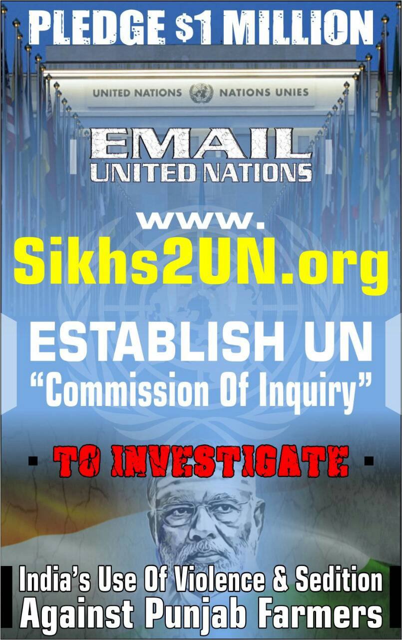 I pledge to fund the expenses of the Commission Of Inquiry when established by UN-OHCHR on India's use of violence and sedition charges to counter Punjab farmers' protest.